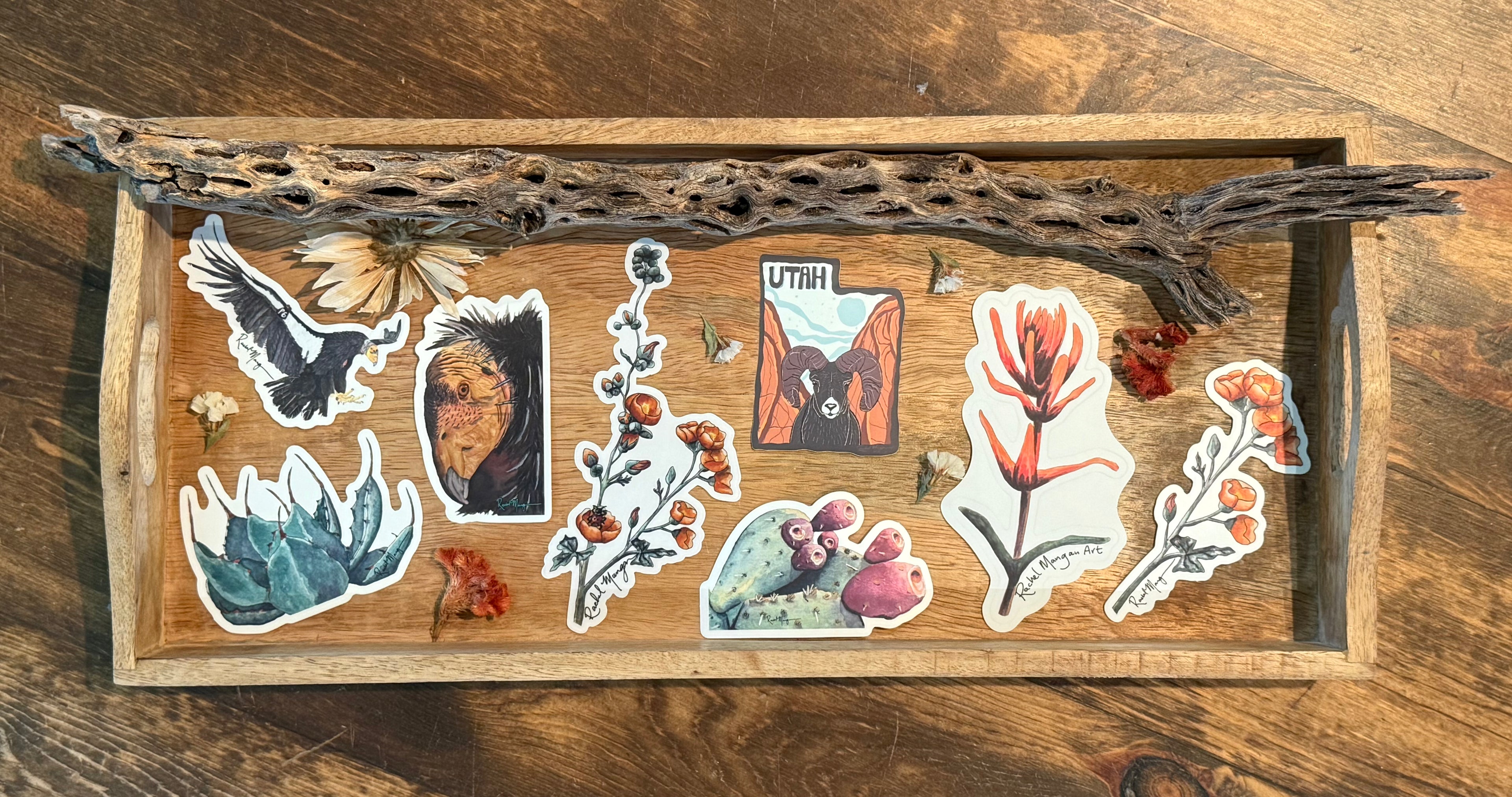 Beyond crafting art from old climbing ropes, Rachel also paints watercolor that she transforms into wearable clothing and fabric repair patches, allowing you to carry your love for the planet on every hike! While she recognizes there is always room for improvement, Rachel is dedicated to making her creative process, from conception to packaging, as eco-friendly as possible. You can find more of Rachel’s art around Southern Utah.