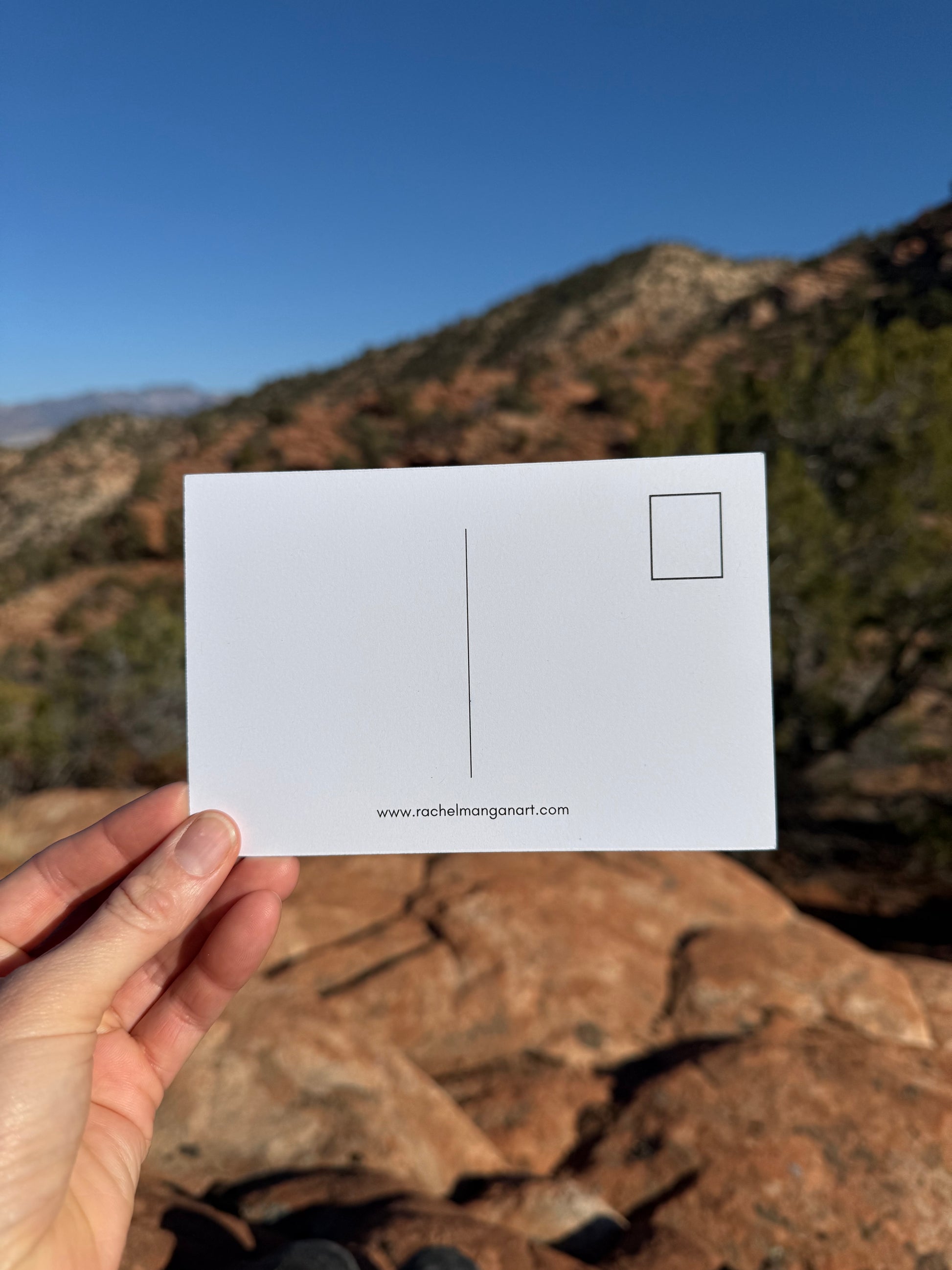 Capture the beauty of Red Rock Canyon on this stunning postcard! Measuring 4x6, this postcard is printed on 100# uncoated, 100% recycled paper, making it environmentally friendly. The watercolor design and iconic joshua tree will transport you to this breathtaking location. Share the natural wonders with friends and family!